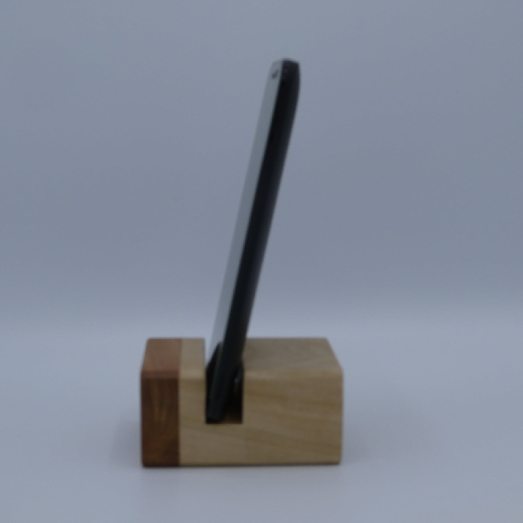 この商品は、2つの木を張り合わせて出来ております 穴の開いている前面とスマホを載せる後部とになってます。